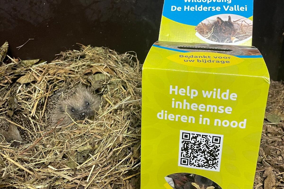 Deze donatiebox kun je zelf gemakkelijk in elkaar zetten en plaatsen bij een persoonlijke gelegenheid. Er kan contant geld in of je kan via de QR code op de donatiebox doneren. Zo zamel je geld in voor Wildopvang De Helderse Vallei en draag je op die manier een steentje bij aan ons werk! Wil je ‘m aanvragen? Stuur dan een mailtje naar info@deheldersevallei.nl.